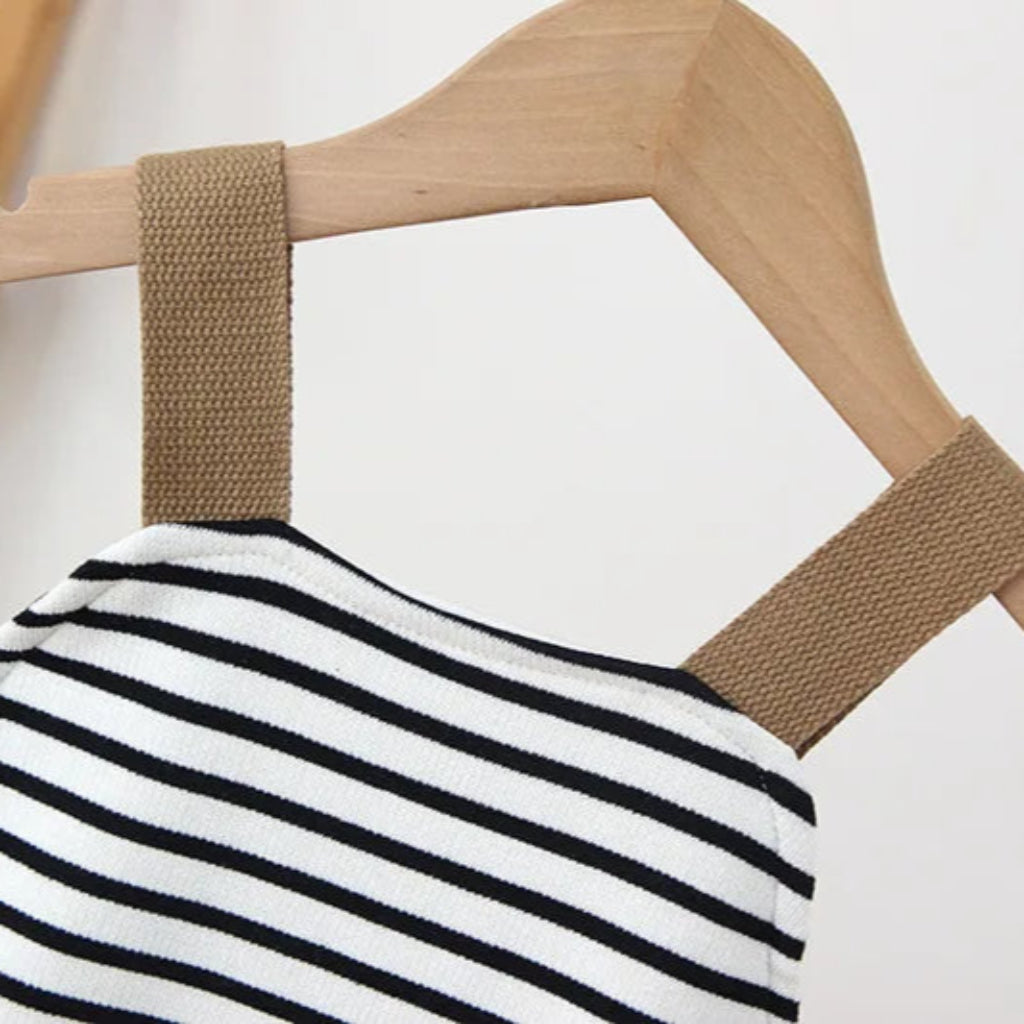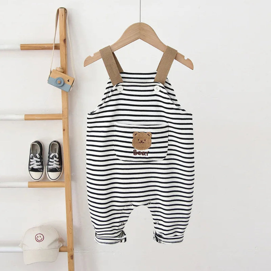 Onea Kids Baby & Toddler Striped Boho Overalls with Bear Details