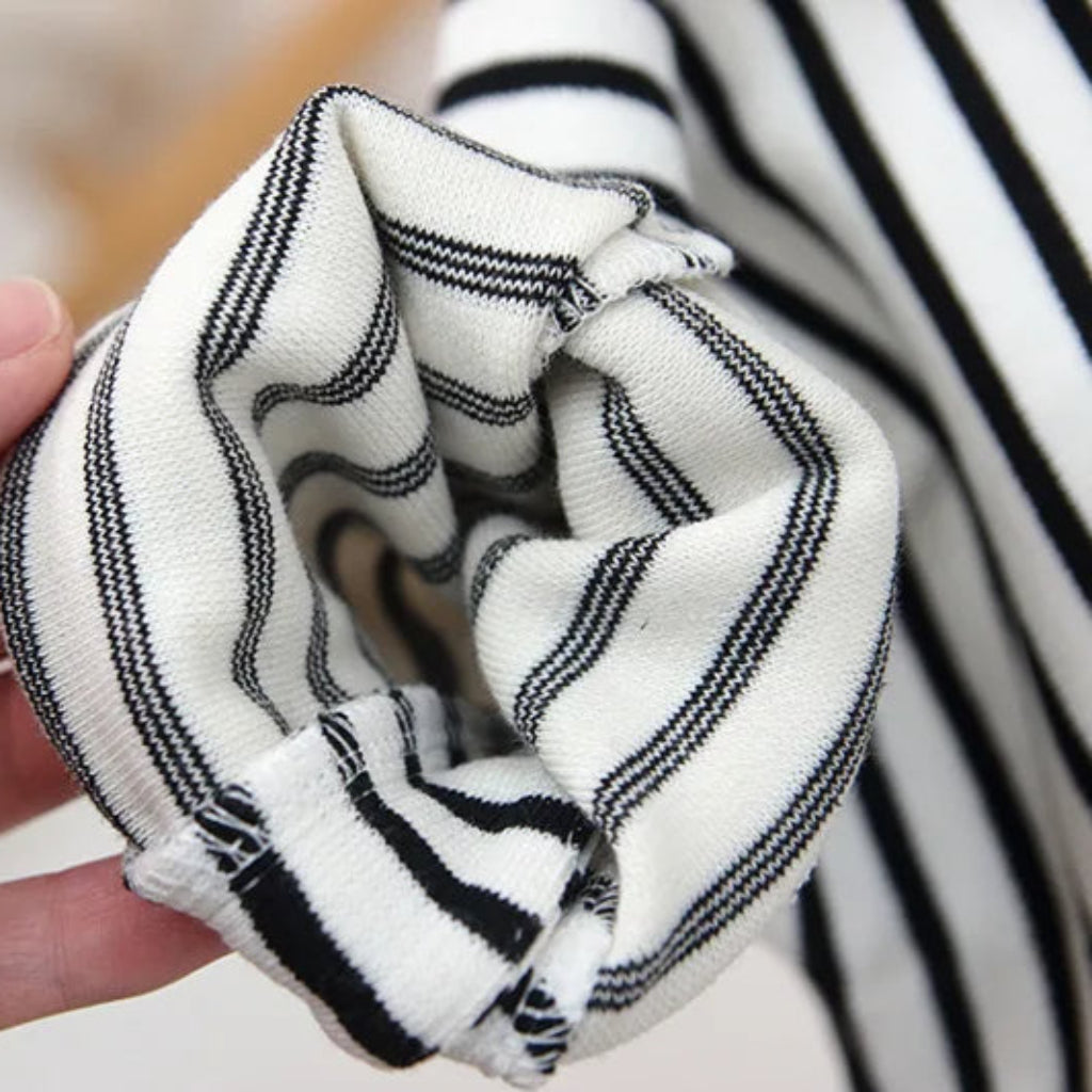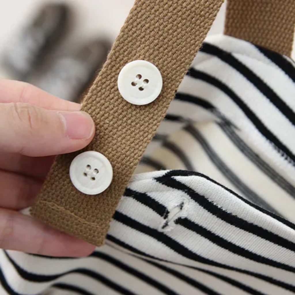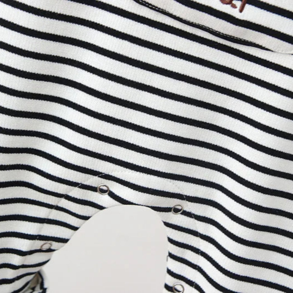 ✔ Playful Design – Black-and-white stripes with beige details and cute bear embellishments.