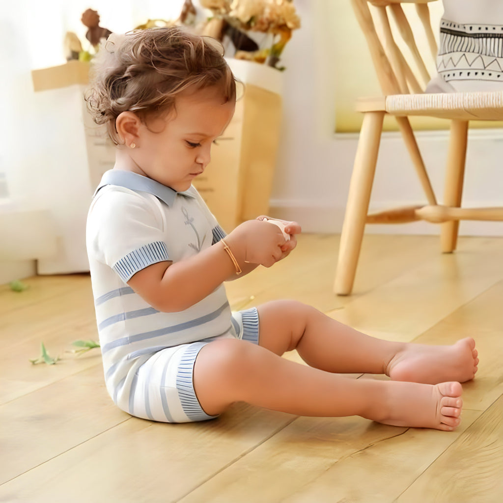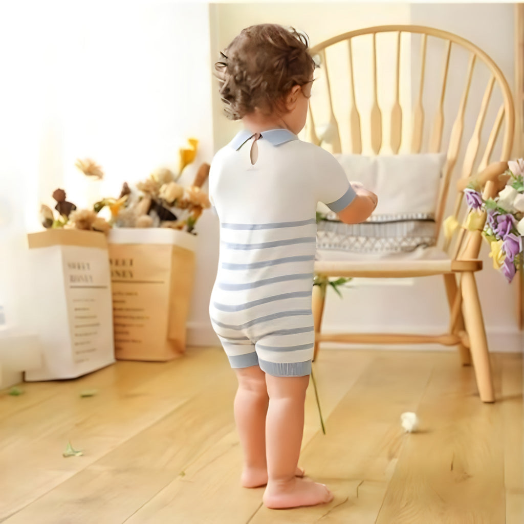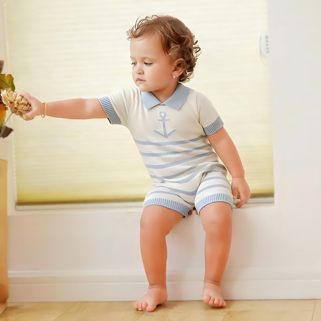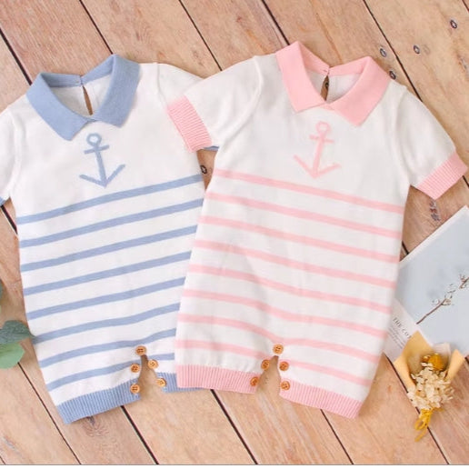 Dress your little one in style with this luxurious knit cotton unisex Sailor Marine romper, perfect for both baby girls and boys. Made from premium quality, 100% knit cotton, this romper is eco-friendly, breathable, and hypoallergenic—ideal for delicate skin.