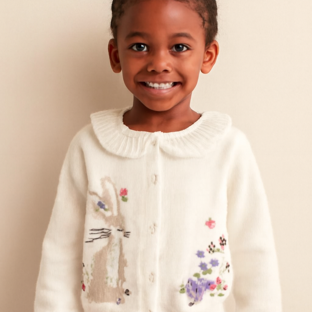 Embrace cozy comfort with our 100% eco-friendly and hypoallergenic knit cotton cardigan, perfect for your little one.