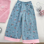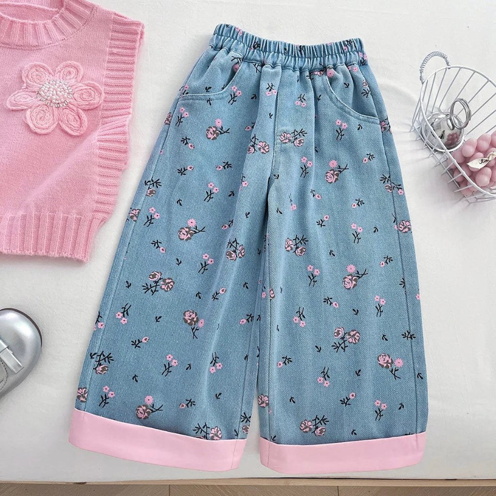 A soft and stylish winter set that blends warmth with adorable pastel charm. This outfit includes a cozy knit sweater decorated with gentle flower appliqués and matching loose-fit pants with a playful print. The breathable cotton blend ensures comfort all day long, giving little ones a warm but lightweight feel suitable for winter layering.
