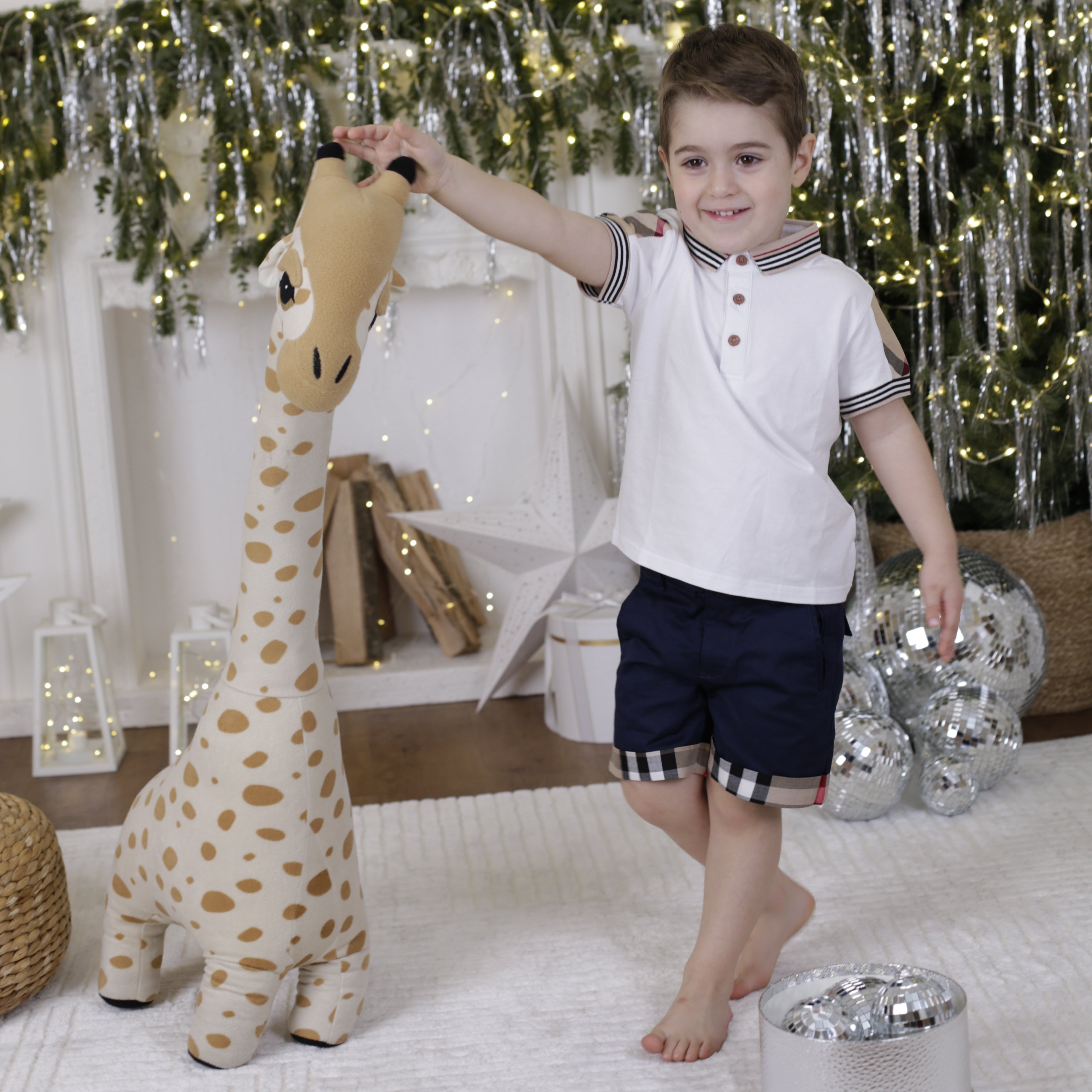 - Sophisticated Style: This lightweight summer white polo is accented with elegant beige plaid details, adding a touch of class to your child's casual wear.