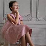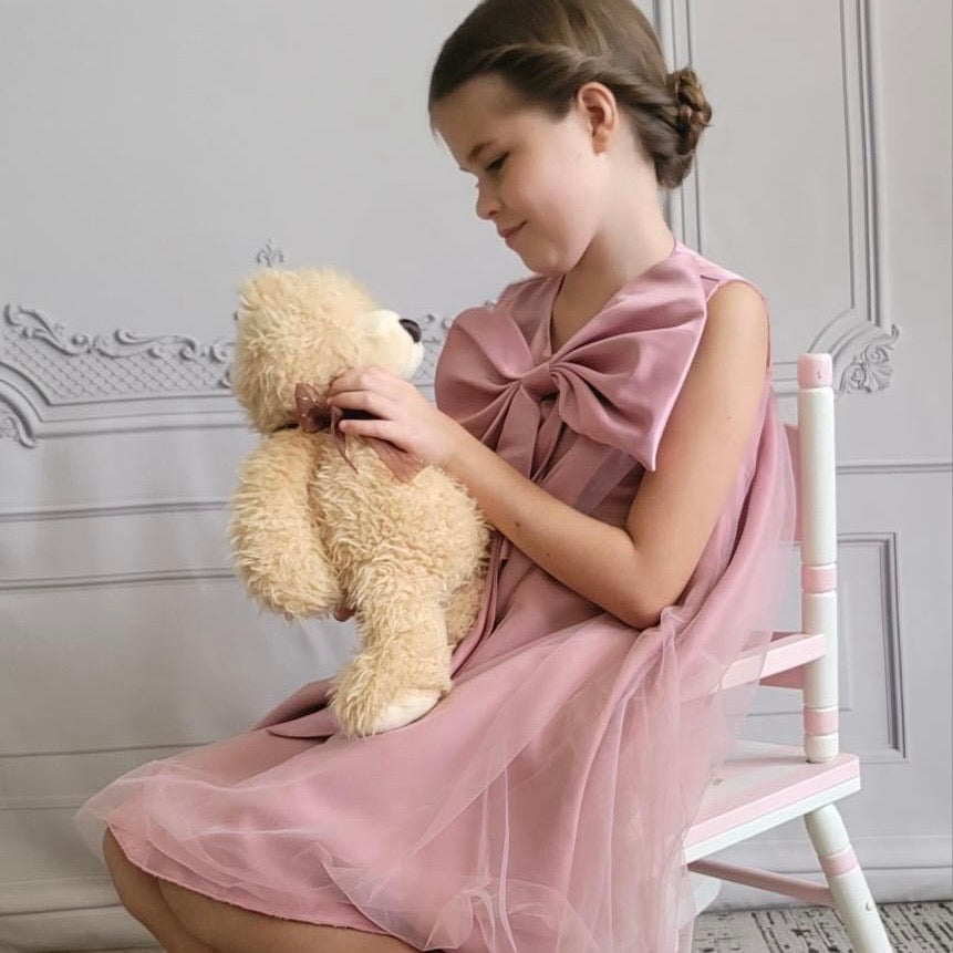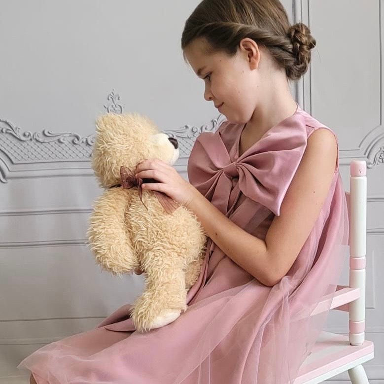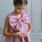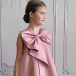 Perfect for special occasions or as a thoughtful gift for a child, this flower girls dress features a large front ribbon for an added touch of charm.
