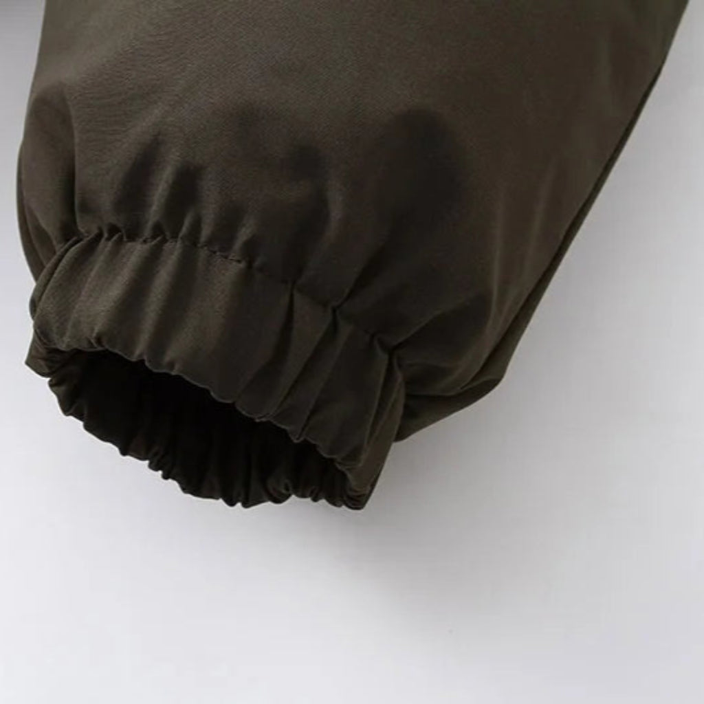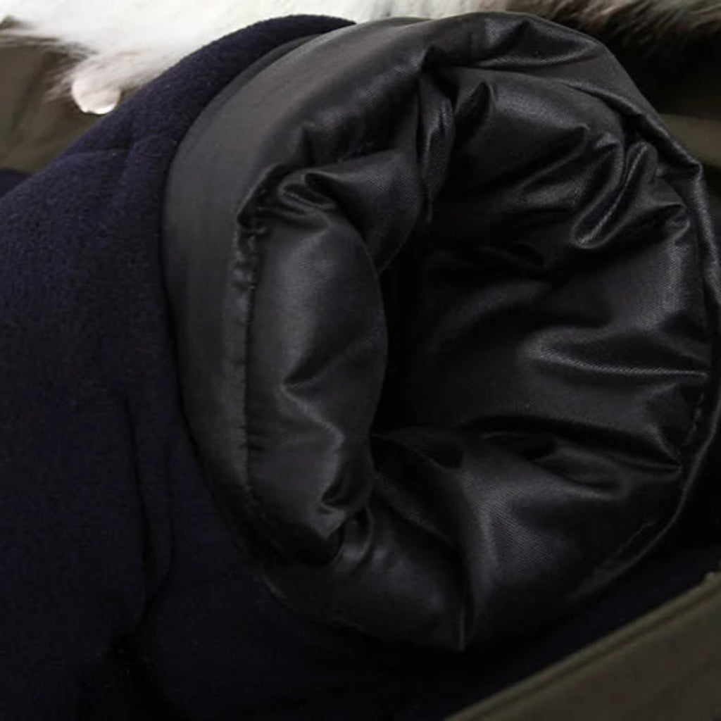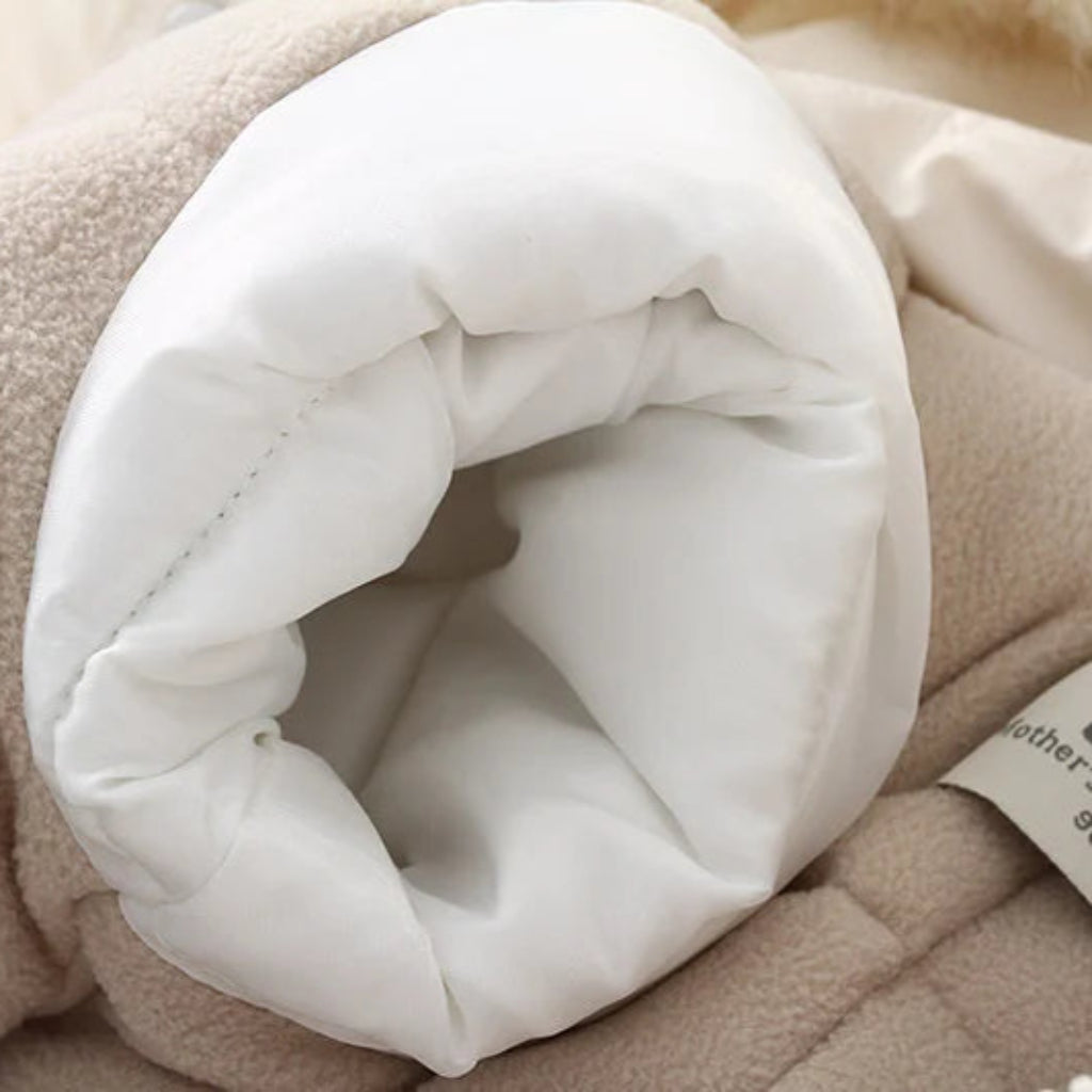 Material: Polyester fiber fill with durable outer shell — wind-resistant and insulating.