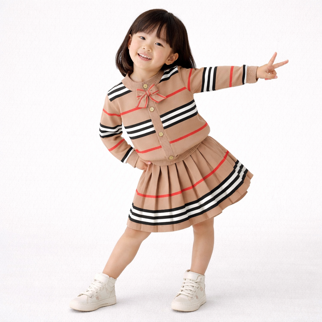 2-Piece Girls' Knit Skirt and Cardigan Set