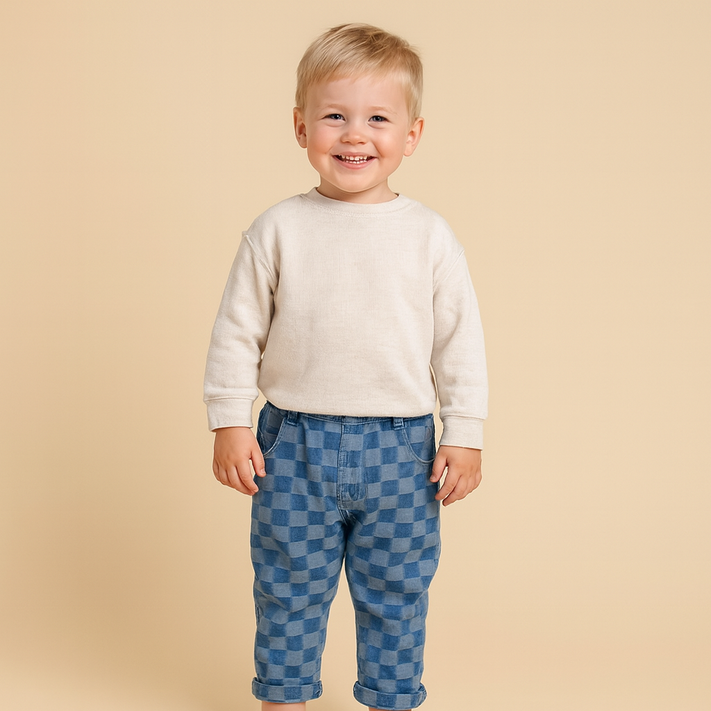 Upgrade your little one’s wardrobe with the Onea Kids Boys’ or Girls' Checkered Denim Pants – the perfect blend of style, comfort, and durability. Crafted from premium-quality denim, these pants feature a trendy checkered design that adds a playful twist to a timeless classic.