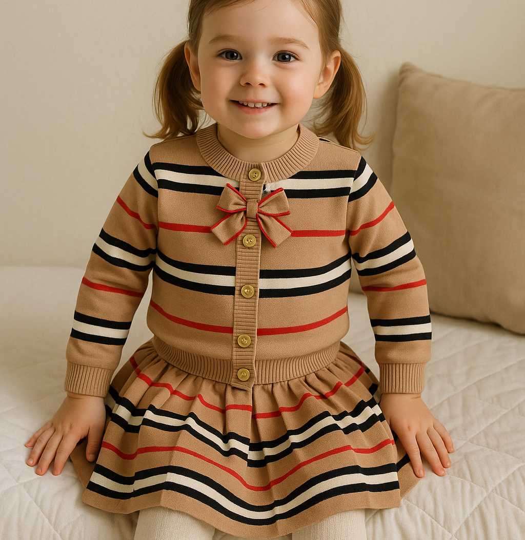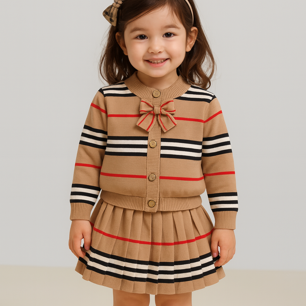 2-Piece Girls' Knit Skirt and Cardigan Set