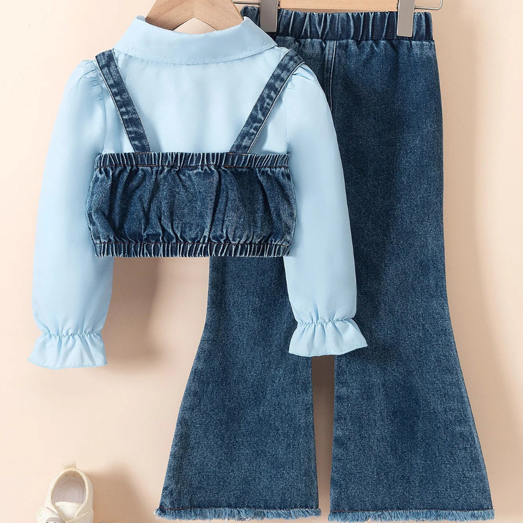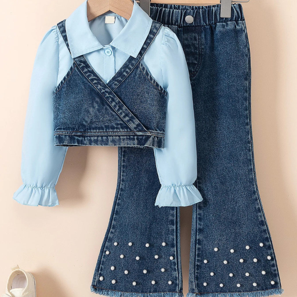 Girls’ Denim Set with Pearls