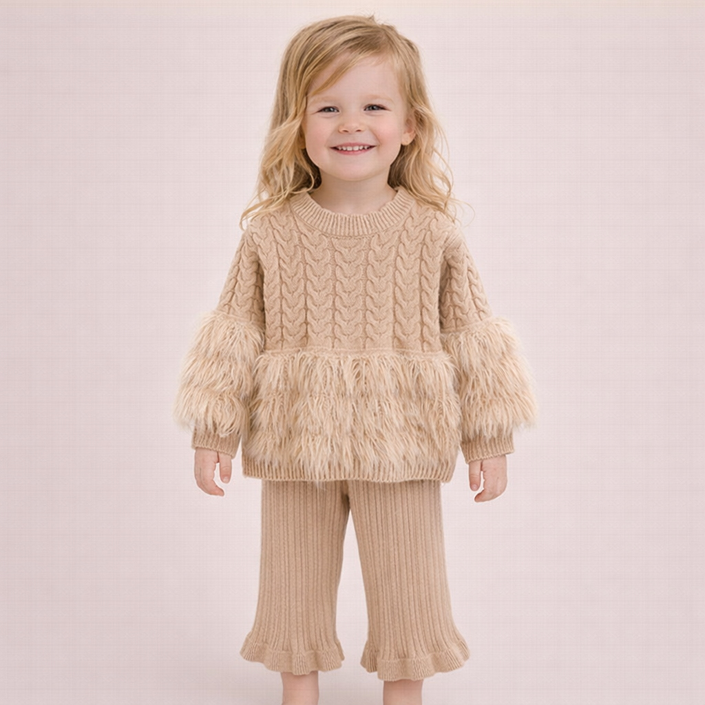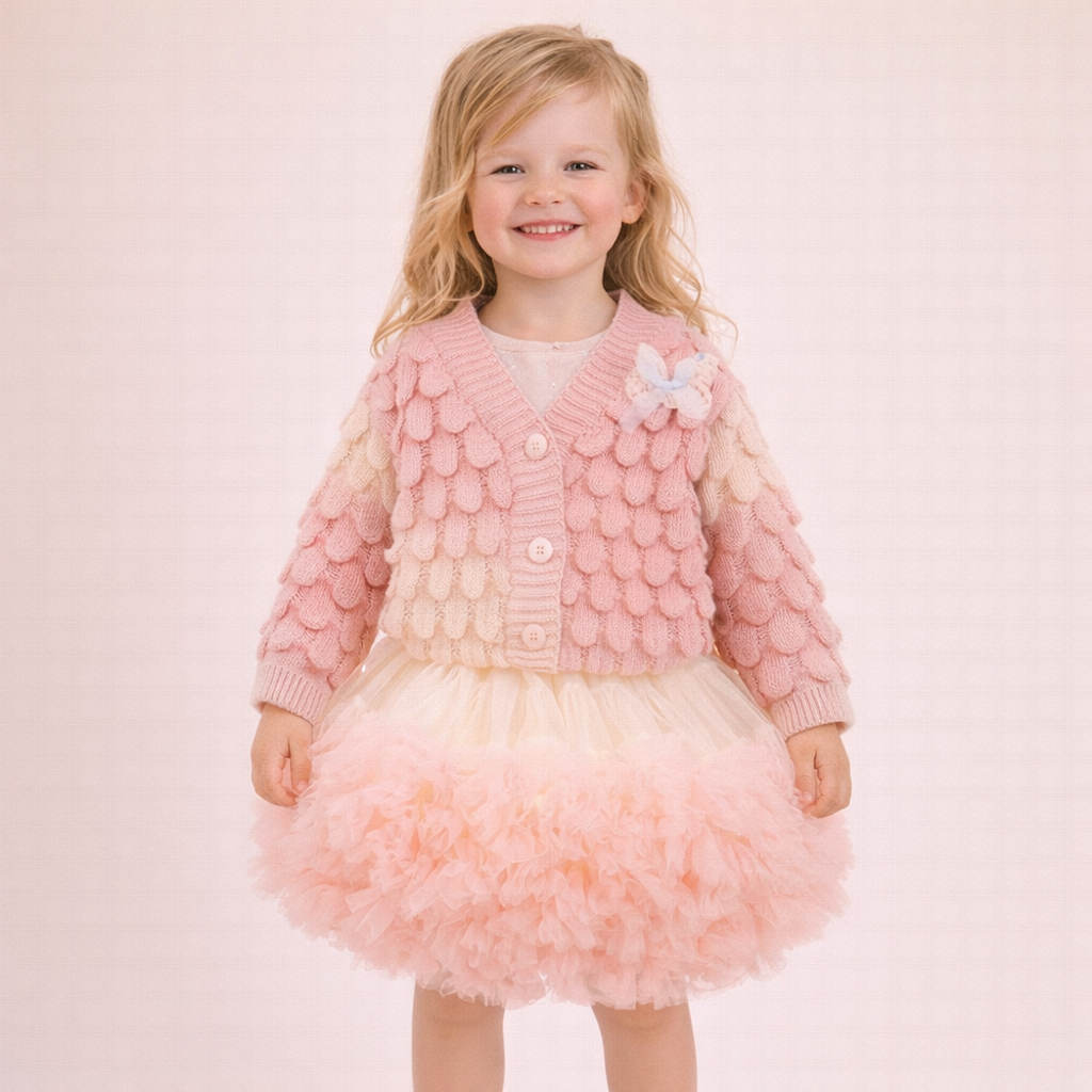 Holiday Cherry Knit Ruffle Cardigan & Skirt
