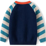 Fun and cozy, this striped Puppy sweater features adorable embroidery and a snug knit design for playful winter days.