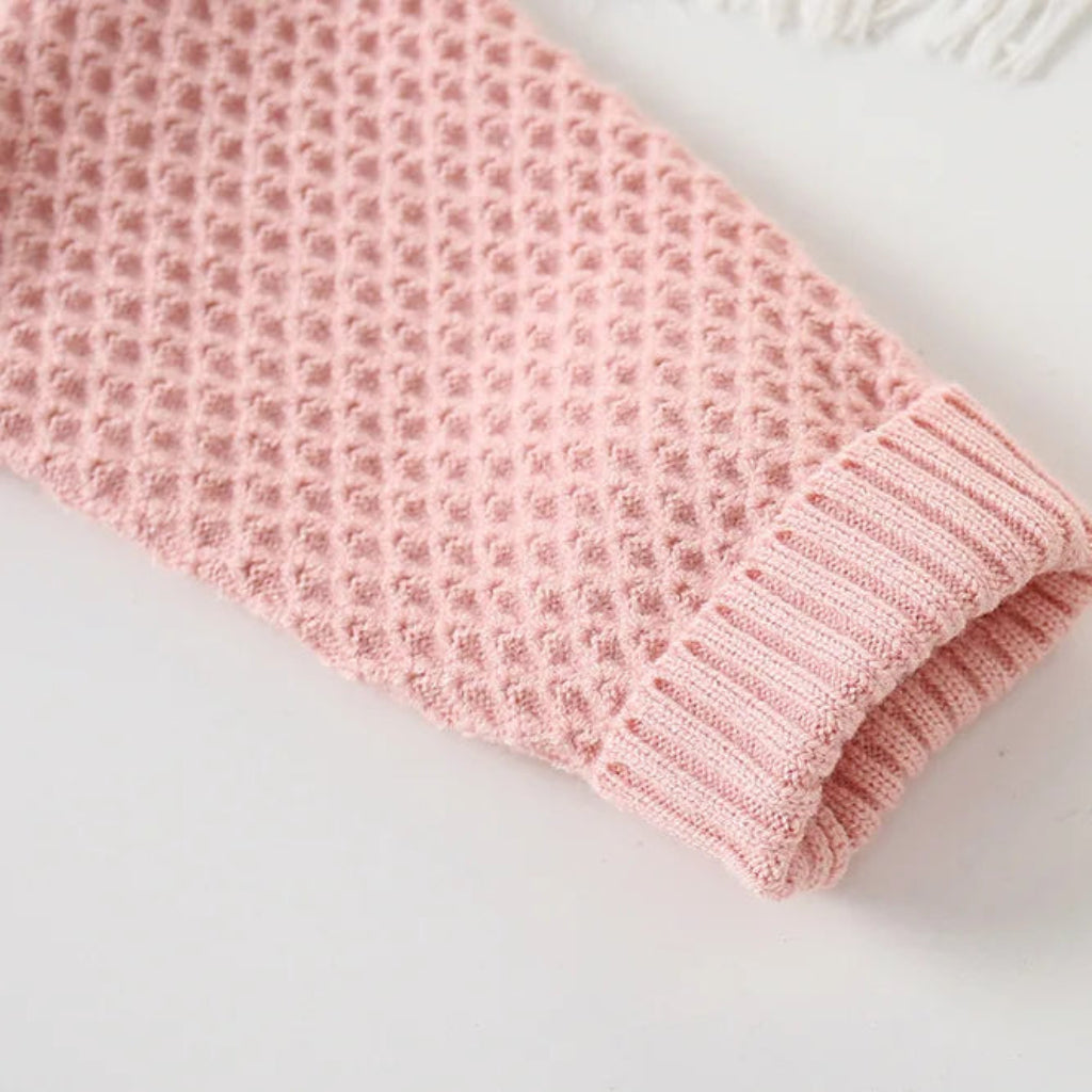 Adorable knitted dress crafted from 70% viscose, designed with a soft, flowy texture that moves beautifully. The dress includes a detachable plush bunny that kids can carry, making it playful and unique. Available in sweet shades, it’s perfect for special occasions while being comfortable enough for everyday use.