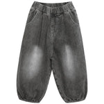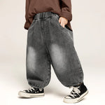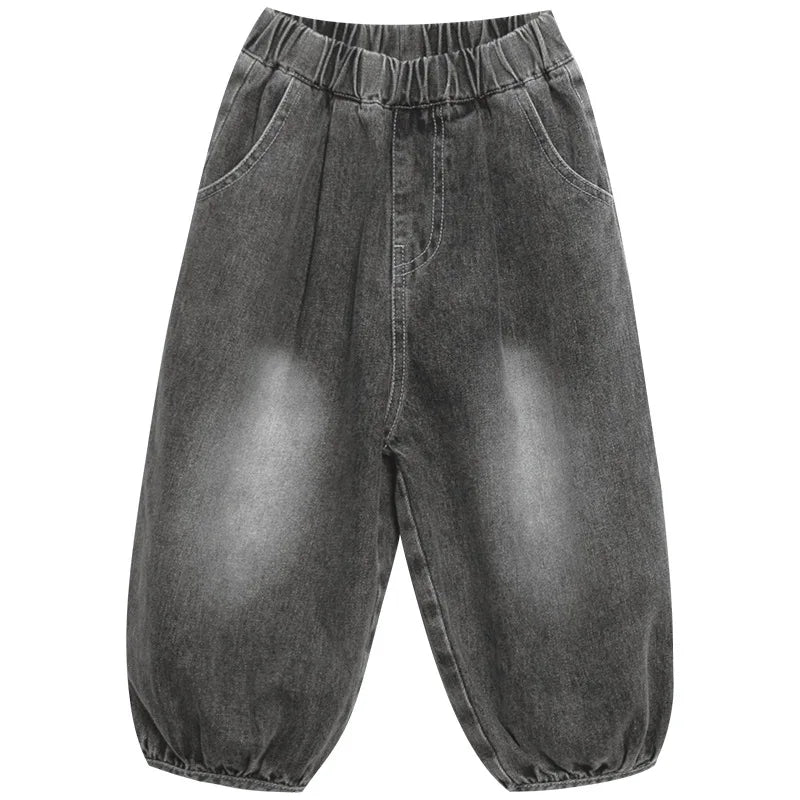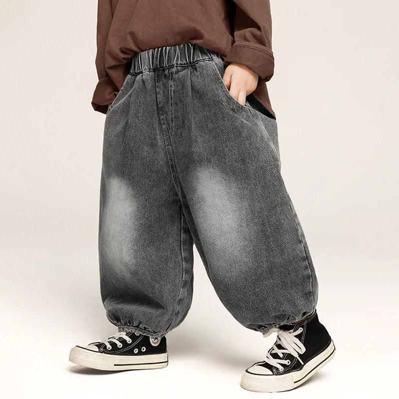 Trendy loose-fit denim jeans designed for maximum comfort and movement. Featuring an elastic waistband for easy wear and a relaxed balloon shape that gives a modern, street-style look. Durable and soft denim suitable for active kids.