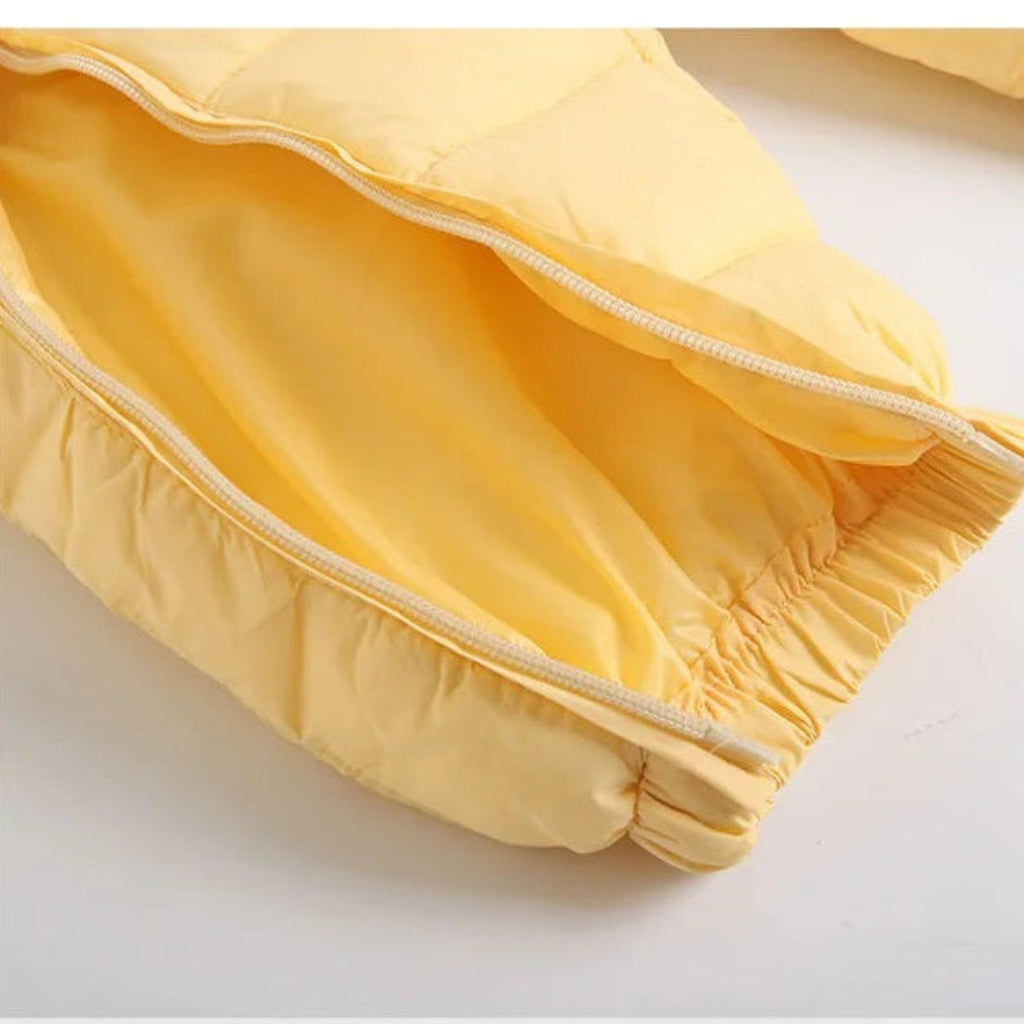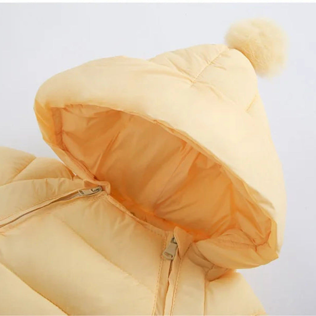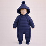 Built for extreme cold protection, this hooded puffer snowsuit offers full-body warmth and insulation. The thick padding and wind-resistant outer layer ensure your child stays warm even in harsh winter conditions. Designed for mobility and comfort, it allows free movement while maintaining superior heat retention.