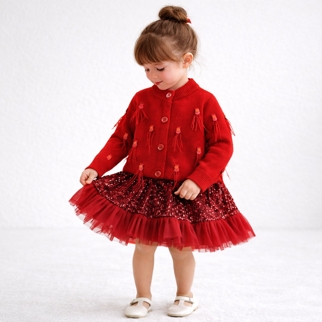 Conjunto de cárdigan y falda de algodón tejido para niña pequeña