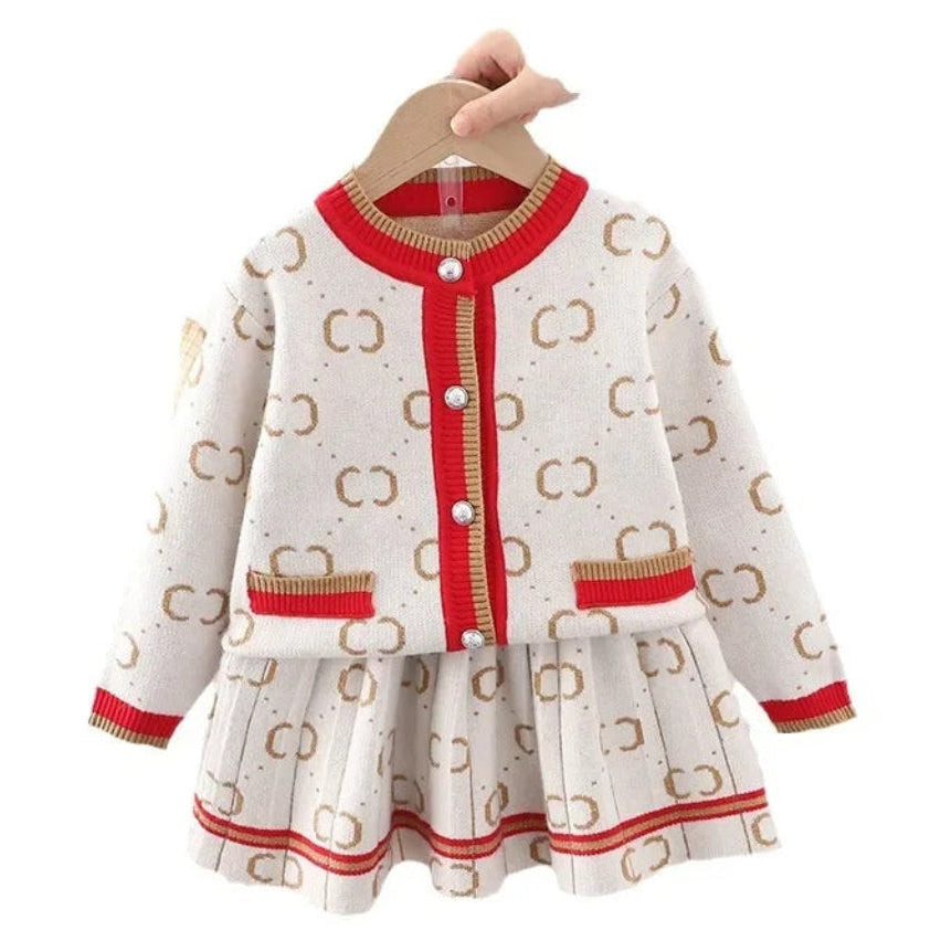 Conjunto de cárdigan y falda de algodón tejido para niña pequeña