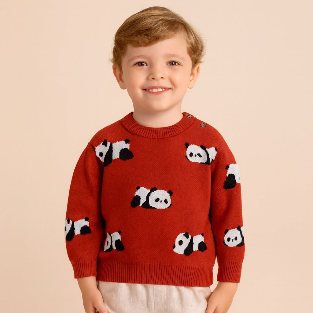 ONEAKIDS Baby & Toddler clothing RED / 12-18M Little Boys' Knit Cotton Panda Sweater / Pullover