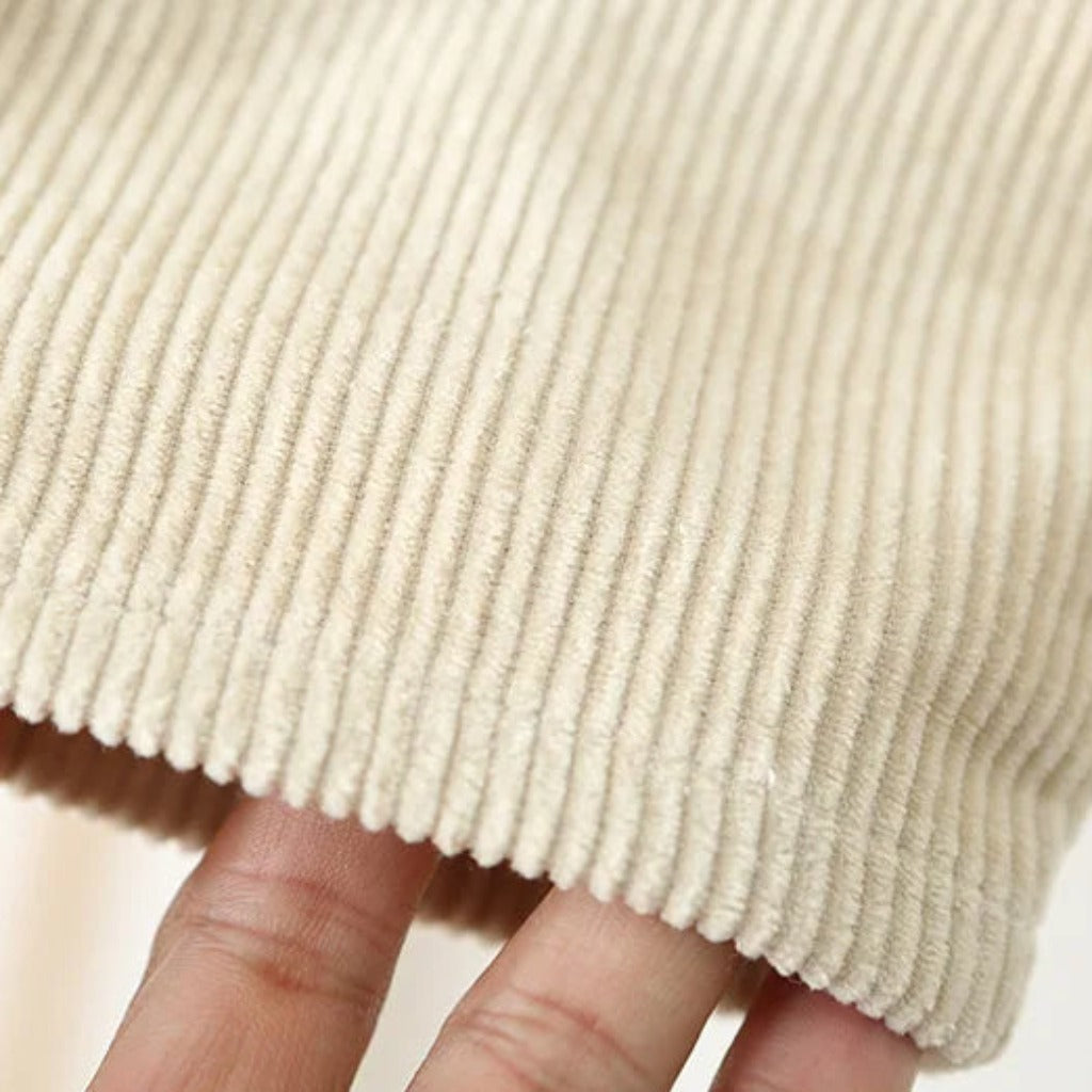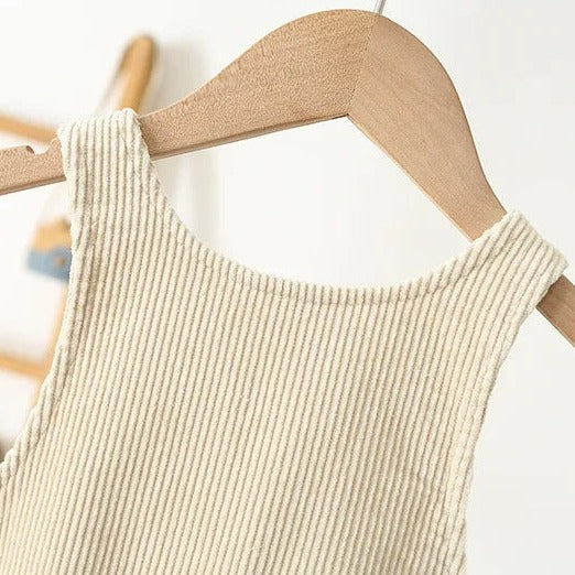 Mono unisex de pana con forma de corazón. Fabricado en pana de alta calidad, este mono ofrece un ajuste cómodo y elegante. Es perfecto para el día a día de niños a partir de 1 año. Colores: crema, marrón y rosa.