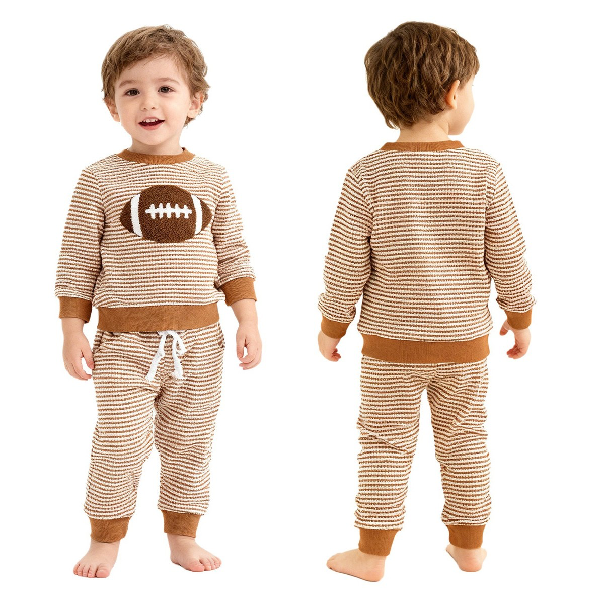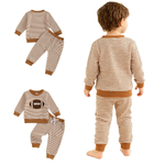 This cozy football-themed knit set is designed for comfort and playful everyday style. Made from high-quality cotton fabric, it feels soft and gentle on children’s skin while providing breathability for all-day wear. The long-sleeve top features a sporty football graphic that adds a fun and energetic touch. The matching pants come with an elastic waistband for a secure and flexible fit. Its lightweight yet warm construction makes it ideal for cooler days or lounging at home. The durable material maintains its shape and softness after multiple washes. This set combines comfort, practicality, and a sporty design perfect for active kids.