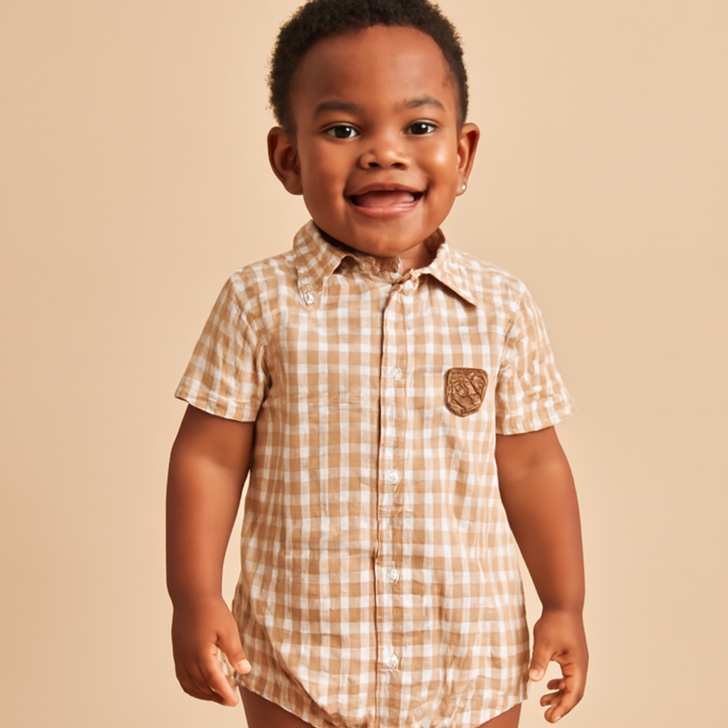 ONEAKIDS Baby & Toddler Outfits BEIGE / 0-3M Checkered Button Up Baby Unisex Romper