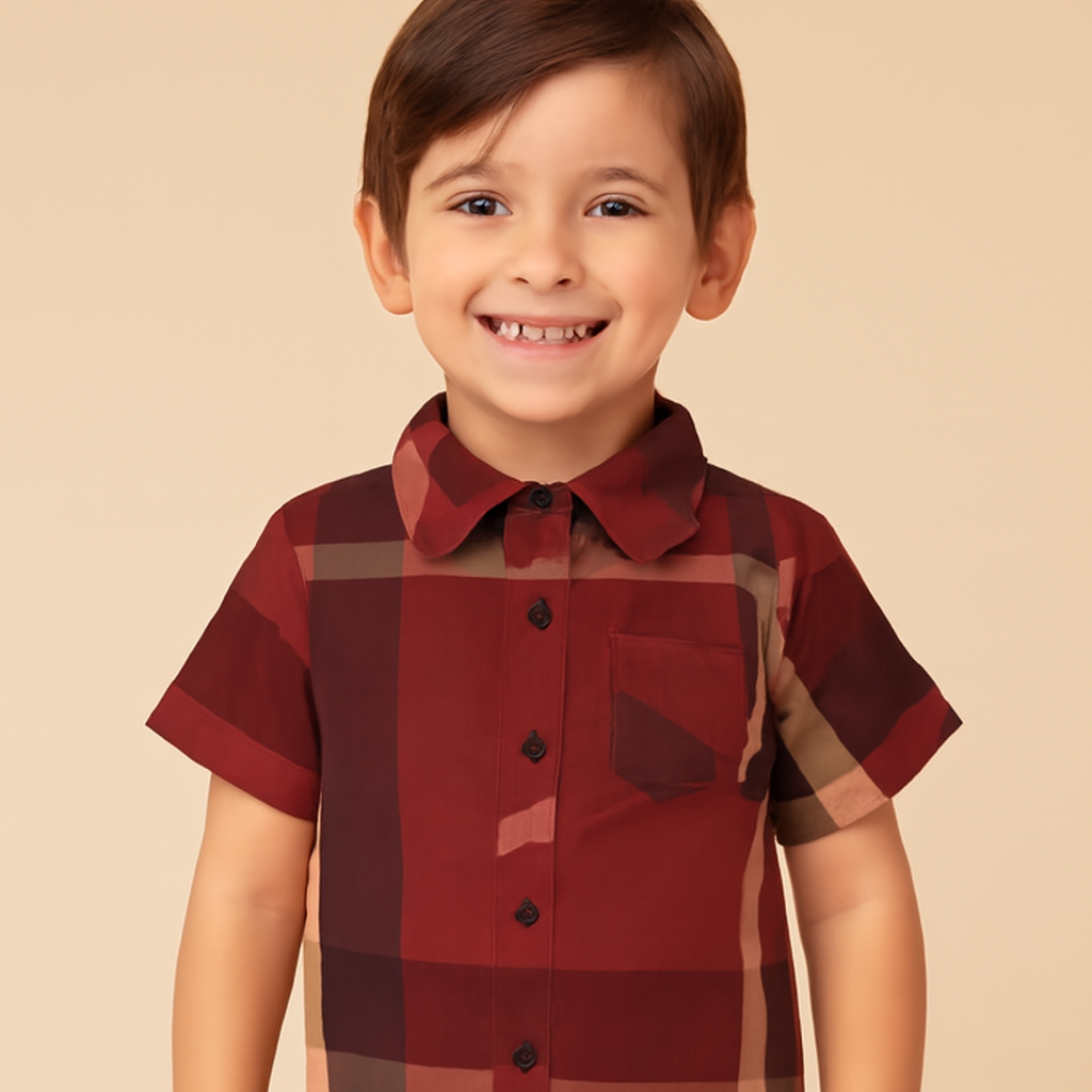 Camisa clásica a cuadros de manga corta para niño