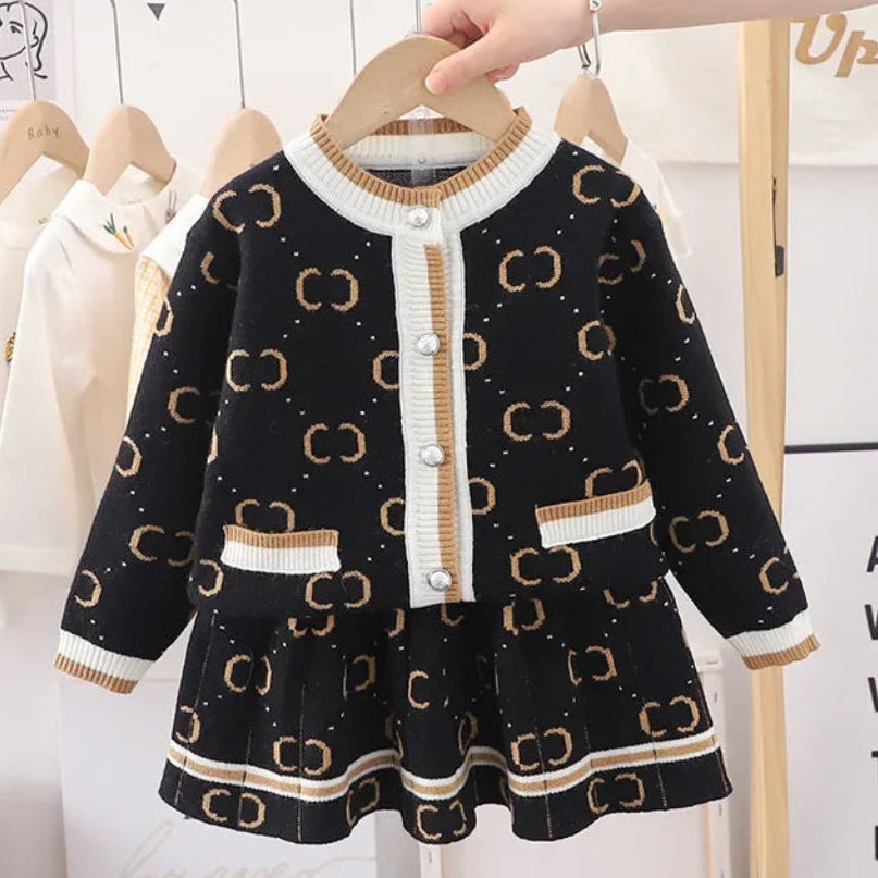 El conjunto incluye únicamente el vestido de punto y el cárdigan. Los accesorios que aparecen en las imágenes no forman parte del conjunto.