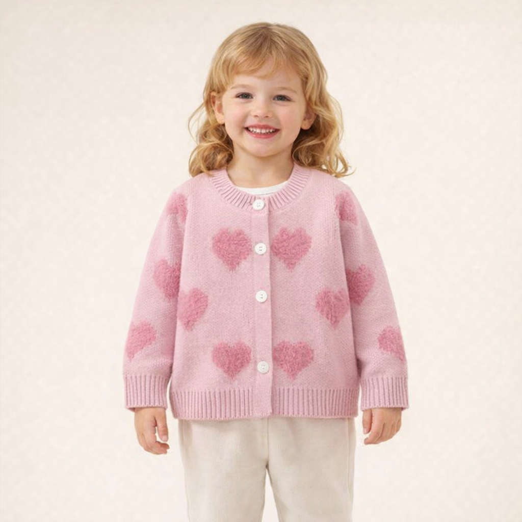 Baby Girls’ Pink Heart Knit Cardigan