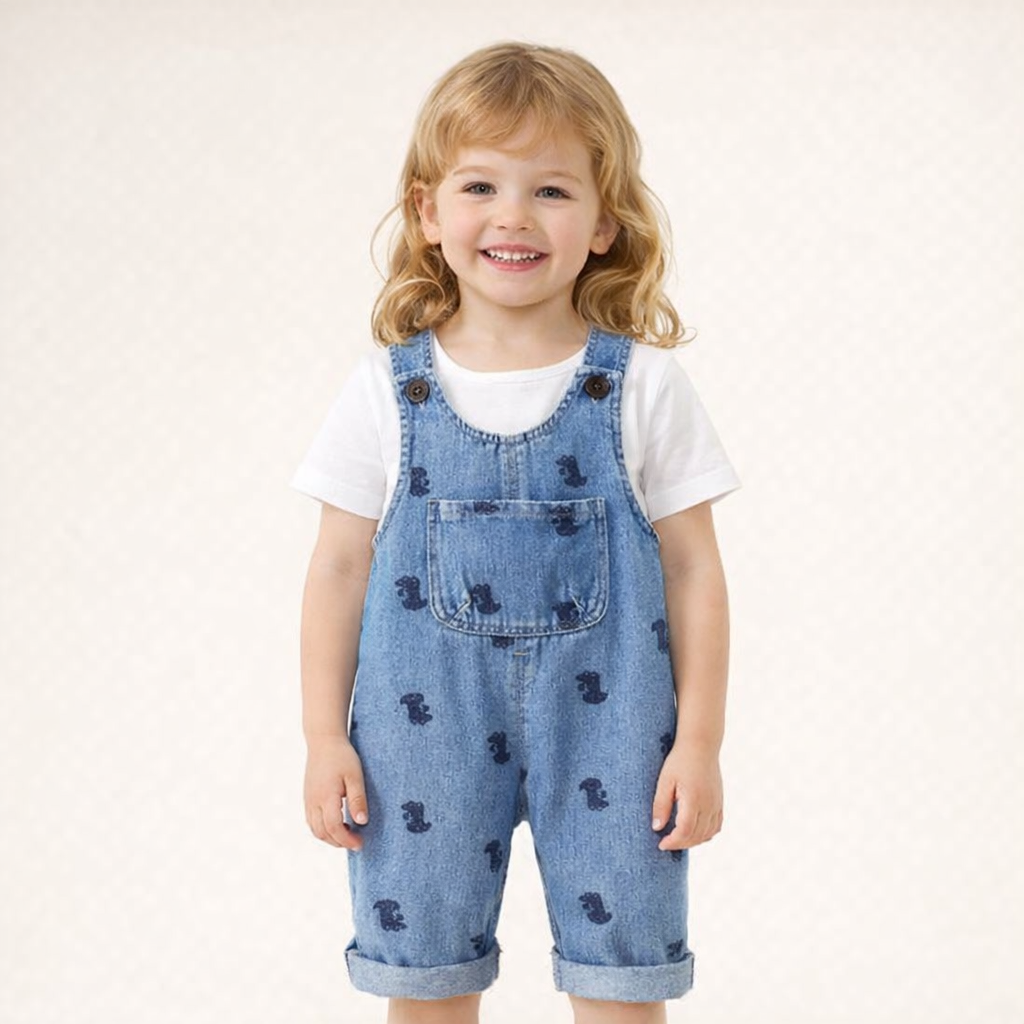 Ensemble combinaison et t-shirt rayé en denim pour bébé