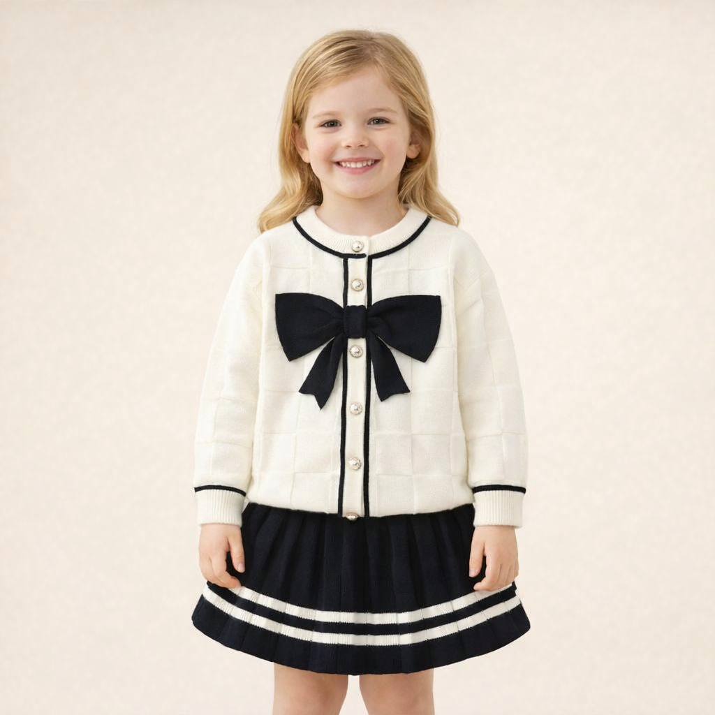 Ensemble cardigan et jupe en coton tricoté pour tout-petit